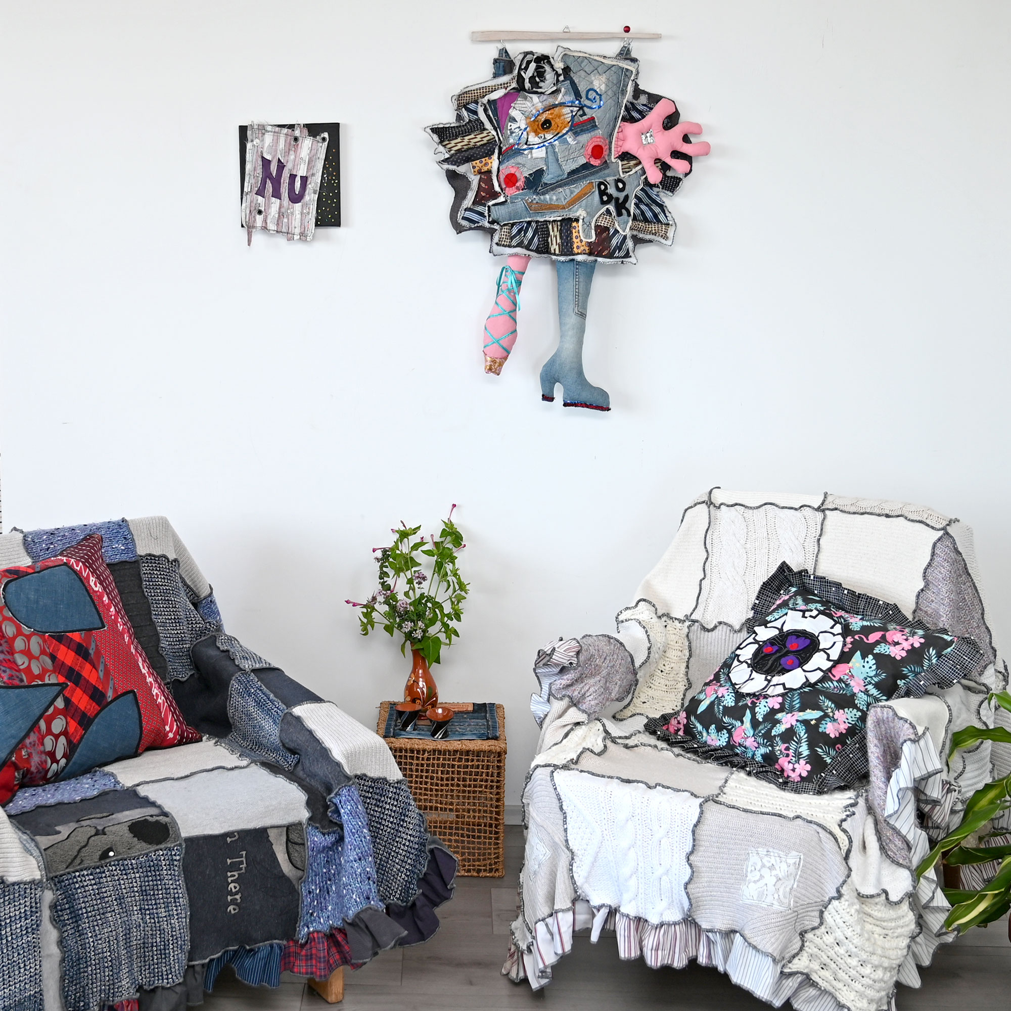 Bucmasti tekstilni događaj za zid, s mogućnošću uklanjanja dašćice na kojoj visi, čime postaje jastučić ili igračka.