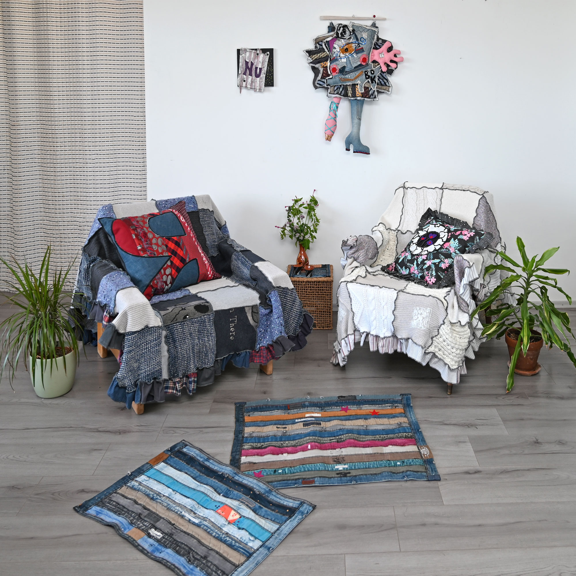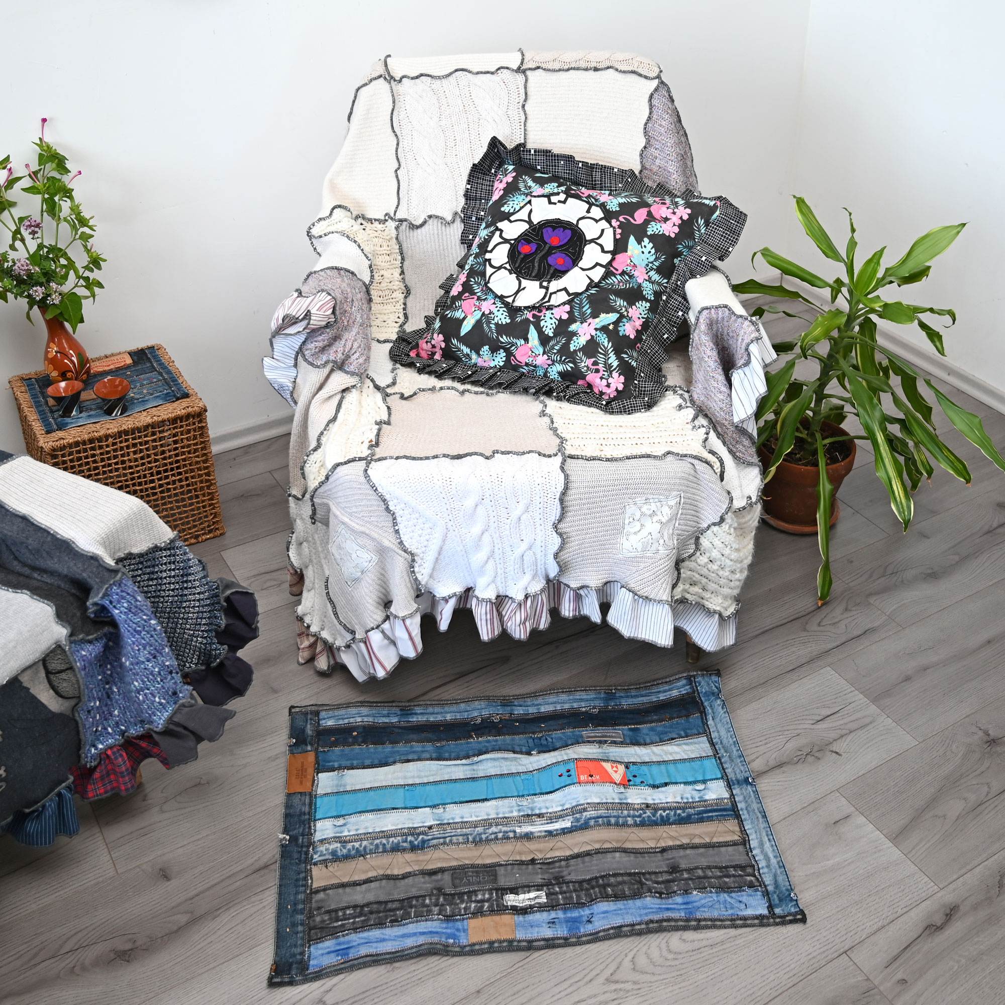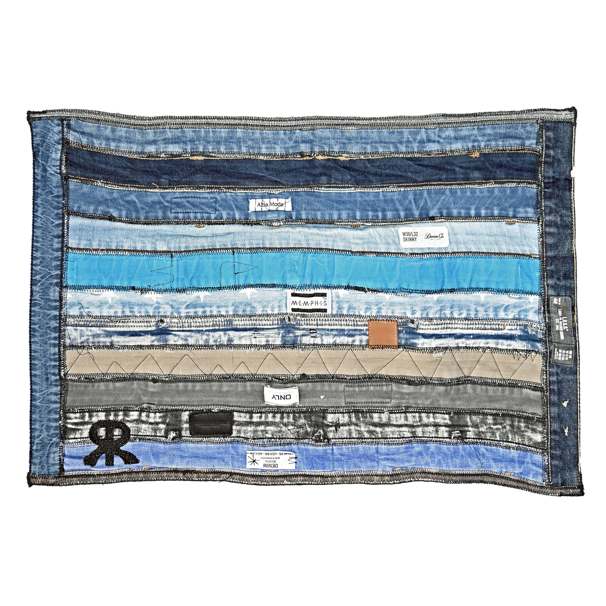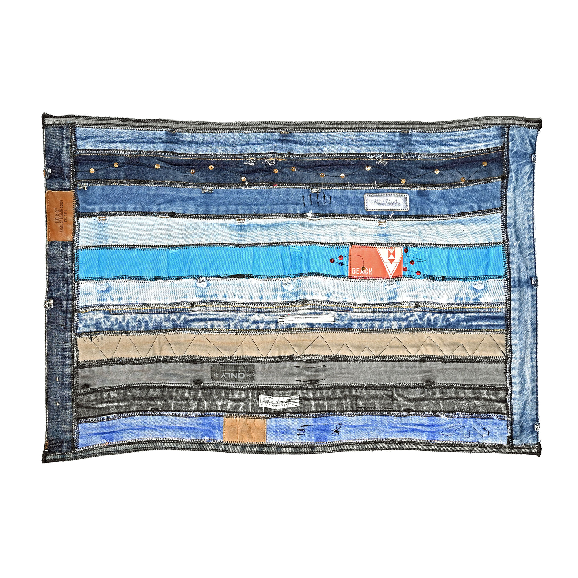 Pamučni tepih recikliran od pasica s traperica. Dimenzije oko 85 x 60 cm.
