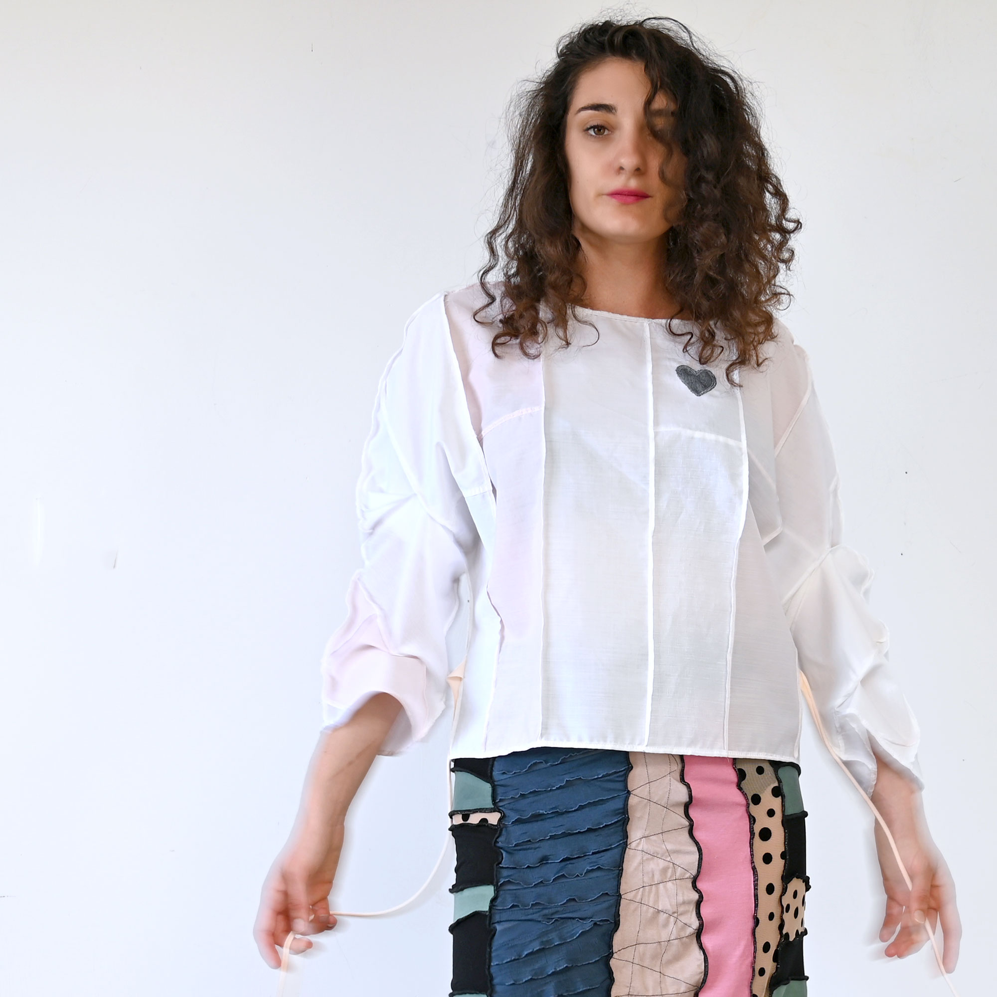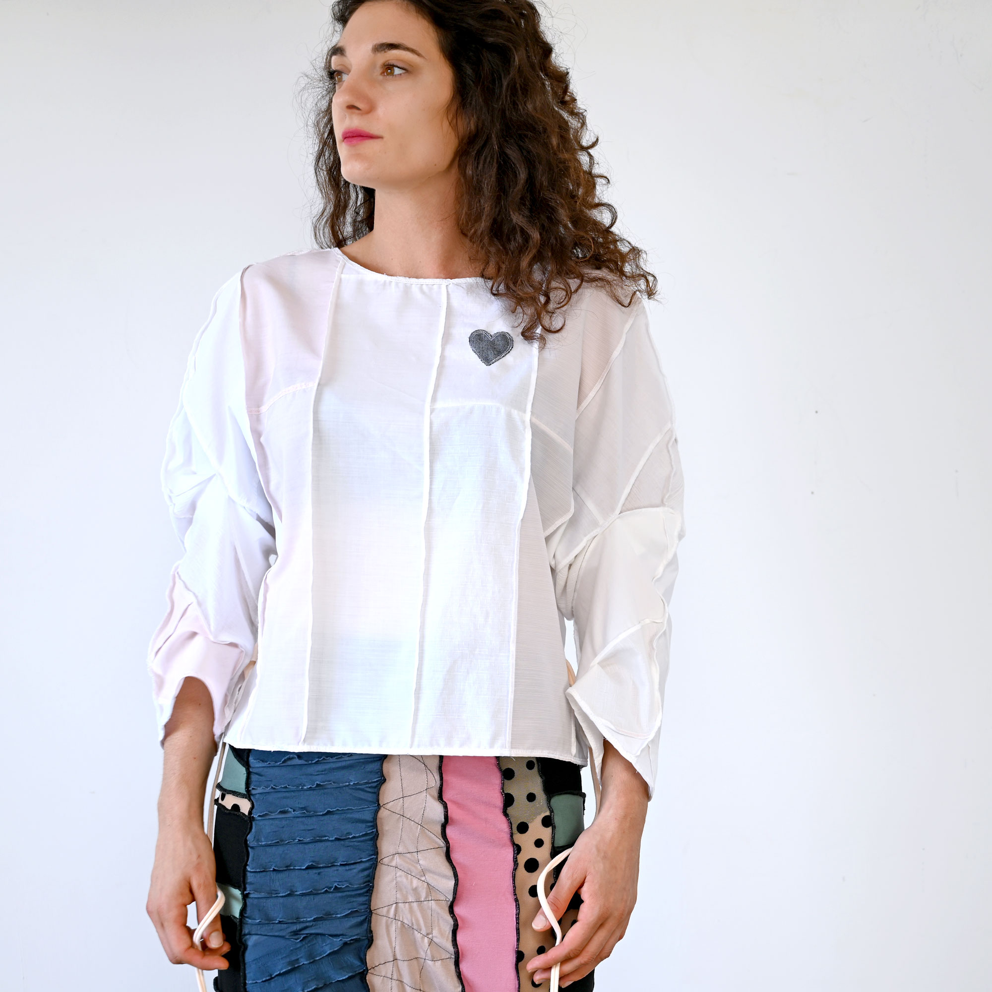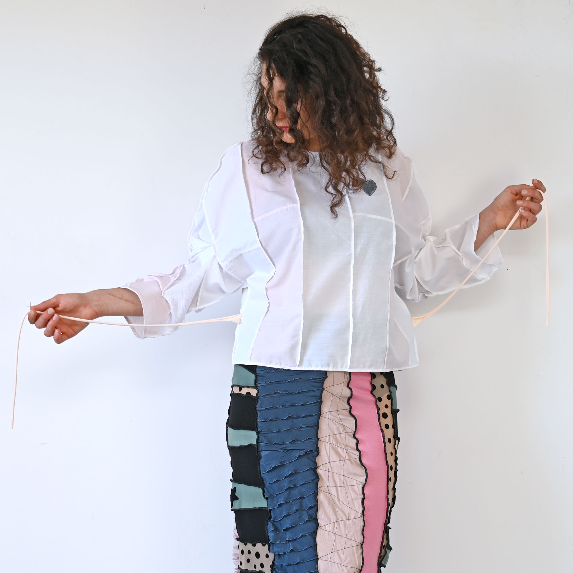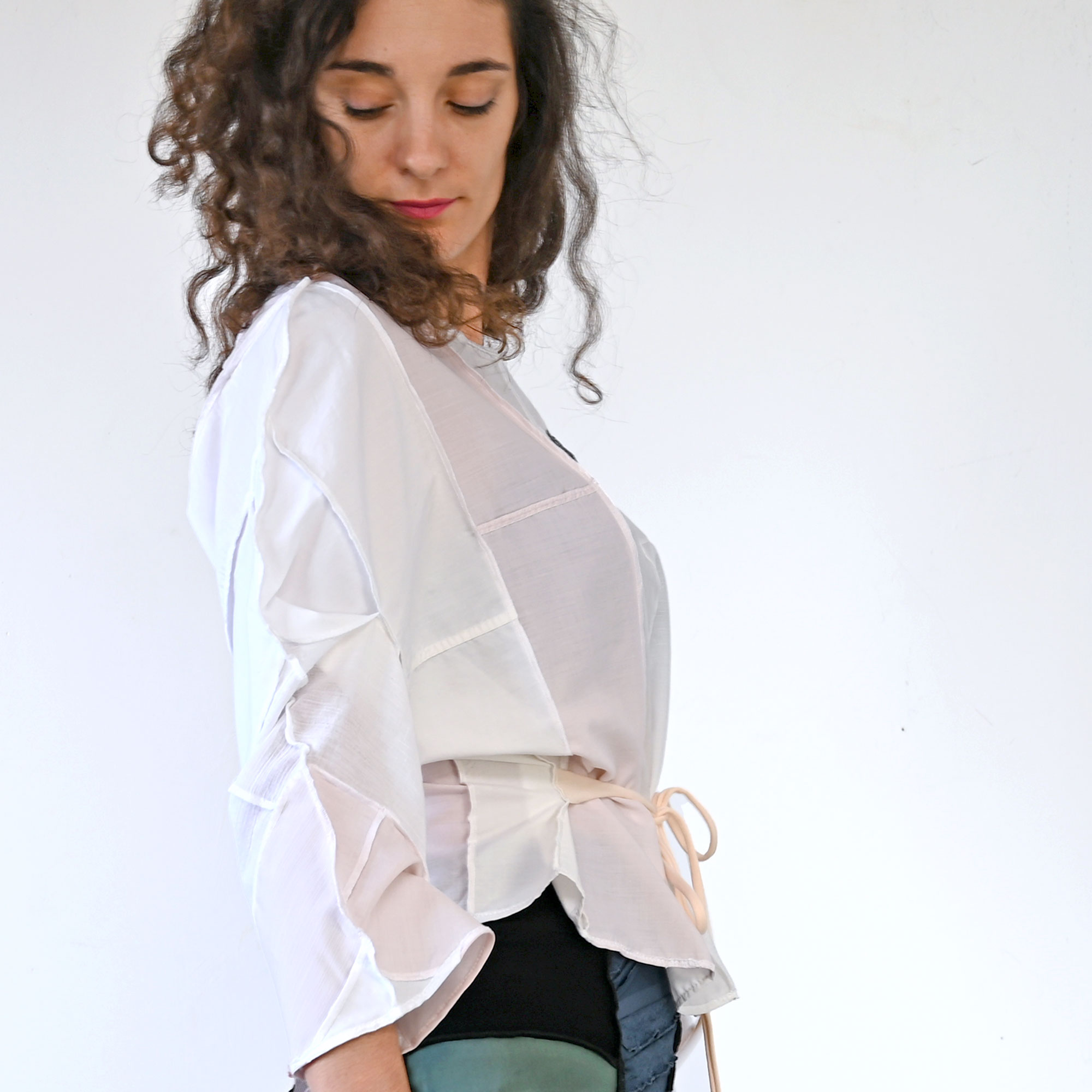Lagana široka pamučna bluza, nadciklirana od muških košulja. Dugačka oko 56 cm. Sa širokim kimono rukavima i vezalicama koje se mogu zavezati sprijeda ili straga.