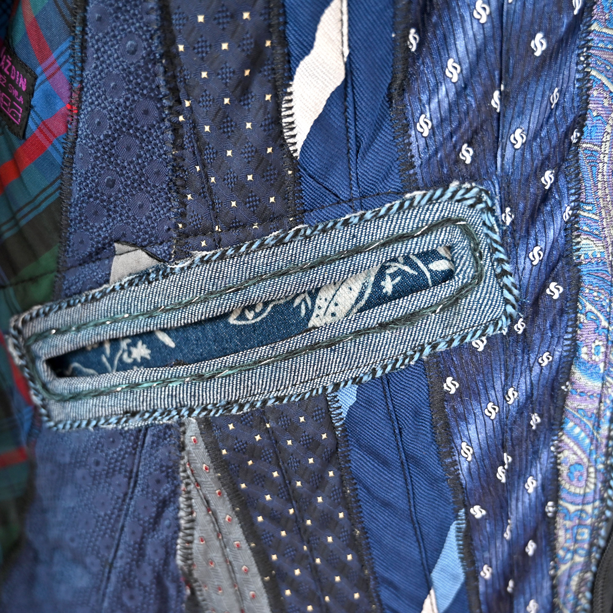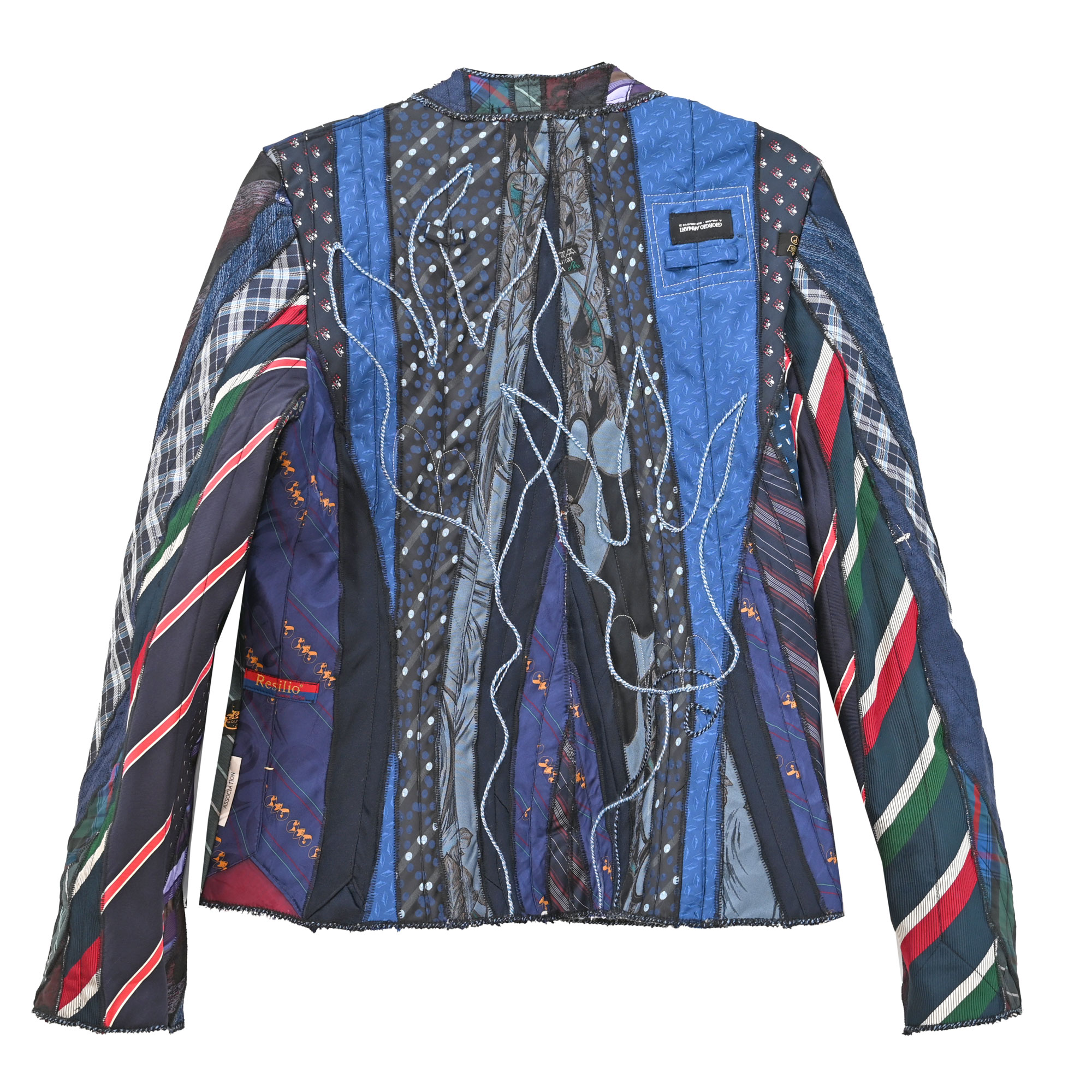Jakna dugačka oko 60 cm, nastala neposrednim spajanjem oporabljenih kravata s patent zatvaračem. S ušivenim džepovima i aplikacijom na leđima.