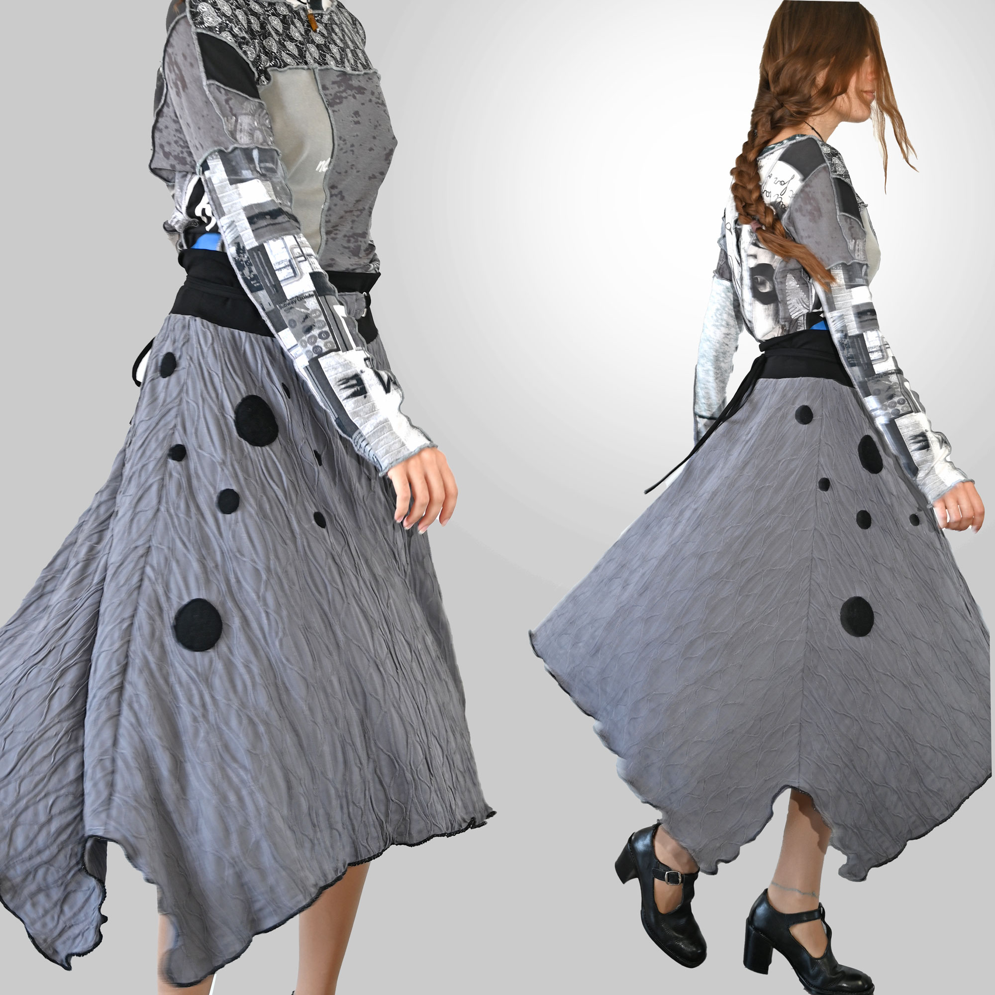 Duljina suknje na sredini sprijeda oko 72 cm, računajući pasicu. Maksimalna duljina na bokovima, oko 83 cm.