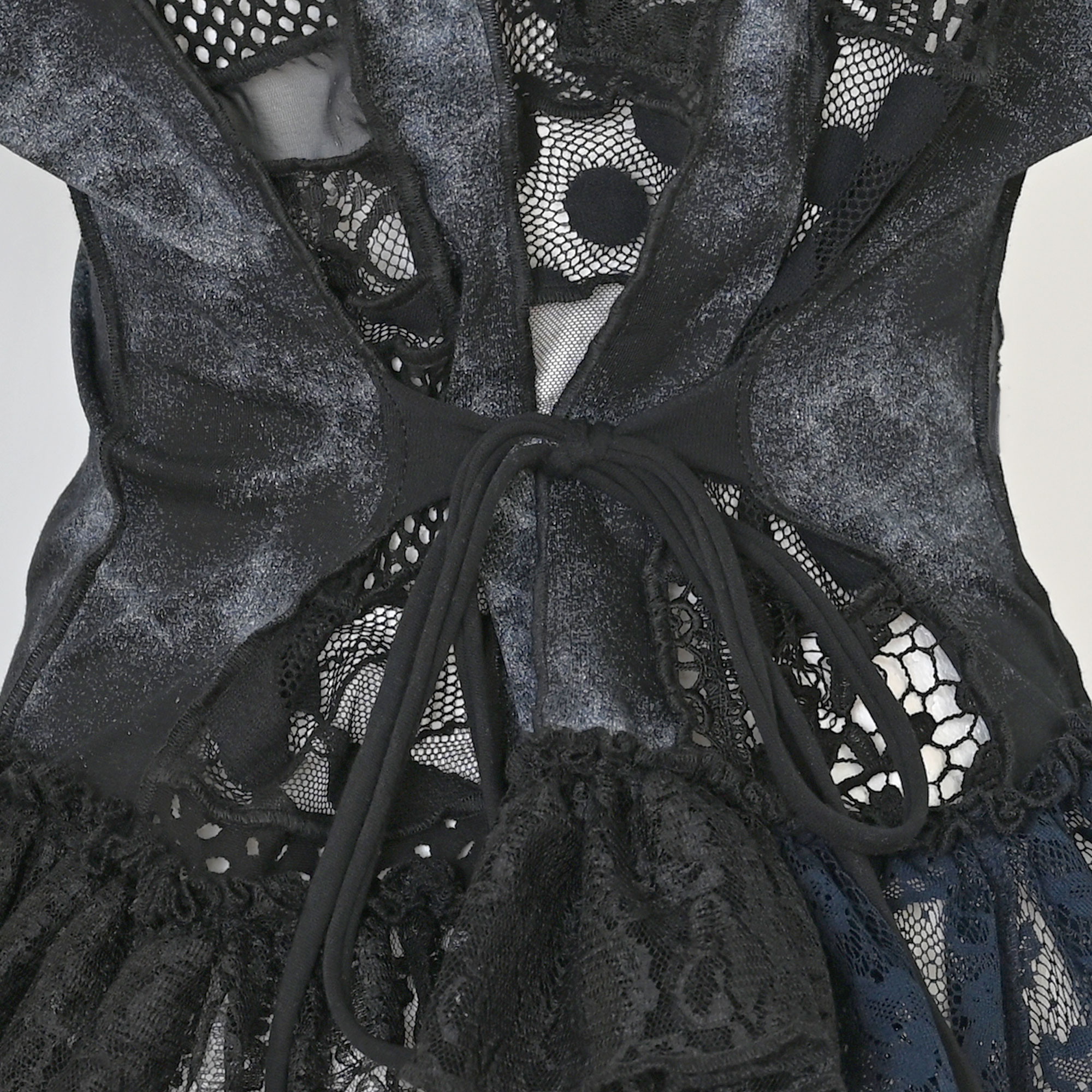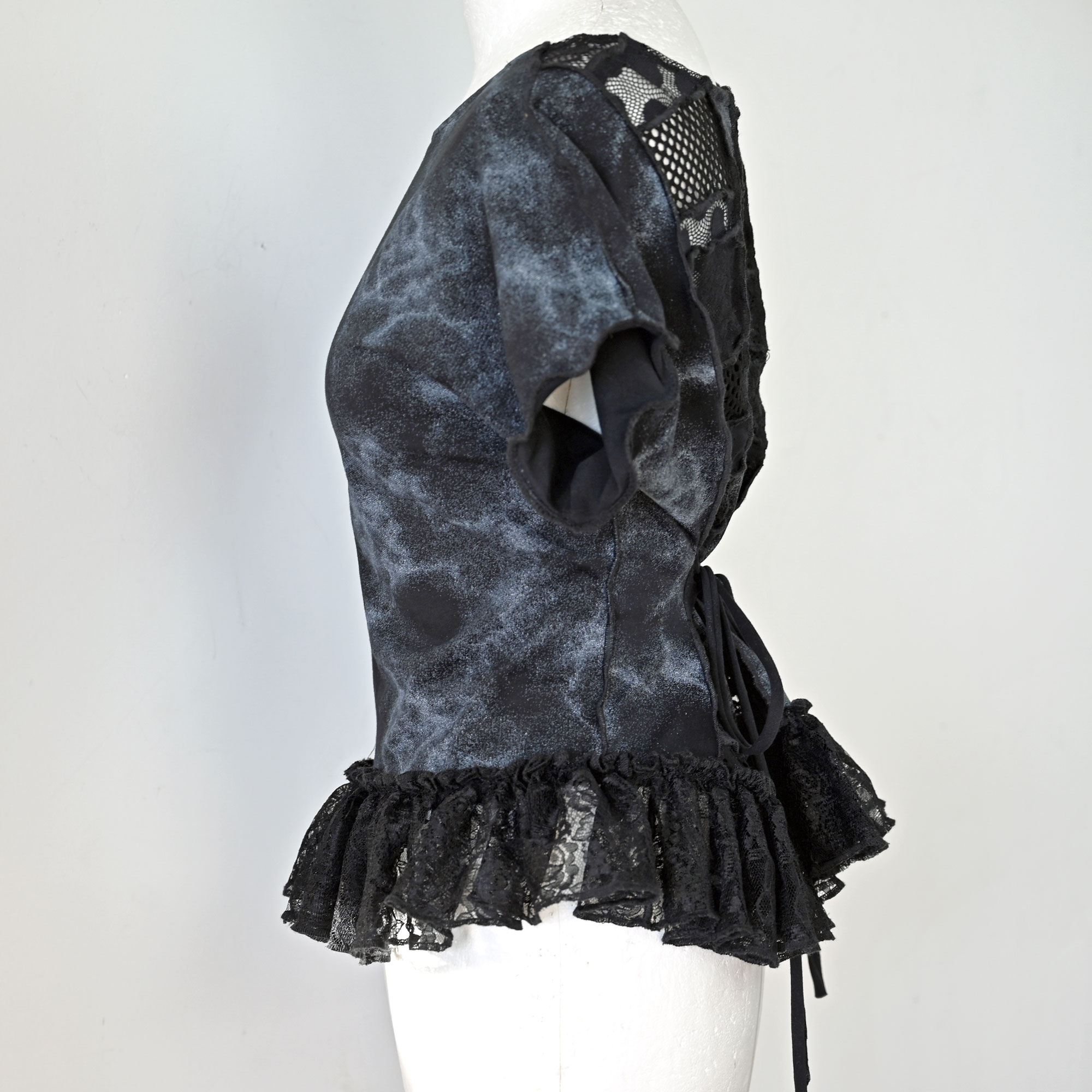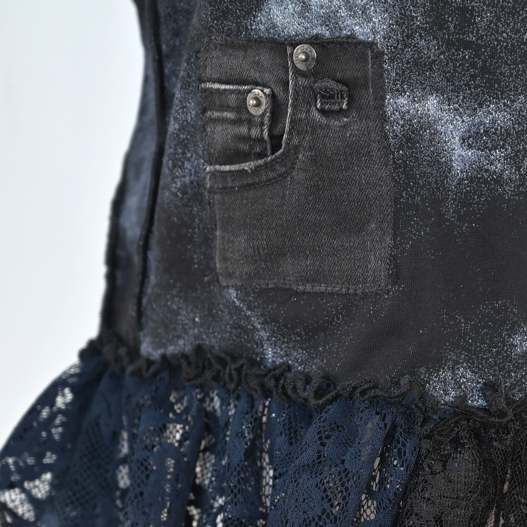 Lagana pamučna majica s umecima od različitih tilova, ostataka iz prošlih projekata. Volan na dnu je nadcikliran od Zarinih i HM-ovih čipkastih haljina.